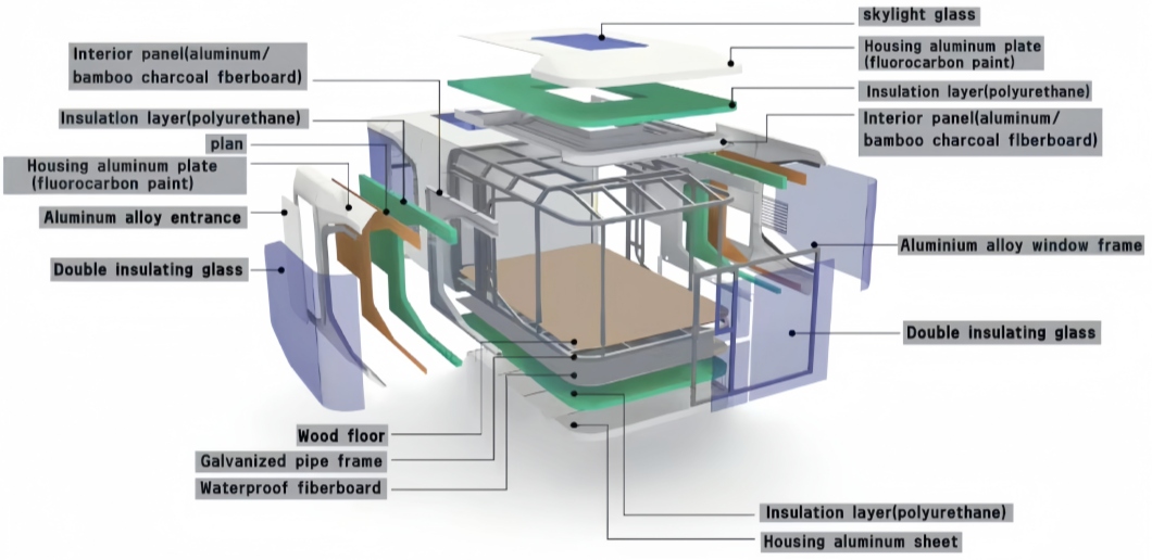 A1: It is typically made from high-strength steel, aluminum, and insulated composite panels for durability and weather resistance.