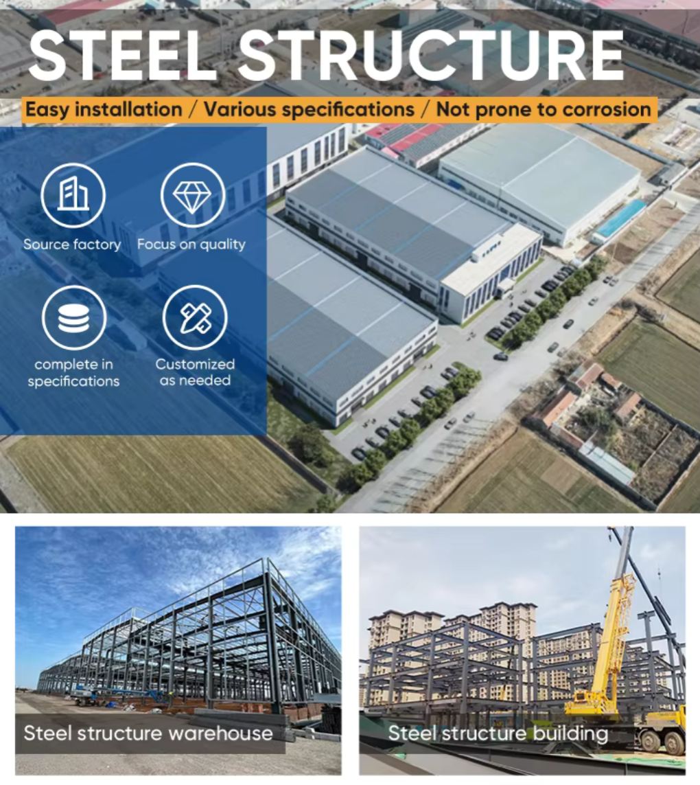 Steel structure components are light-weight, have a short construction period, are easy to dismantle and expand, and can save costs.
