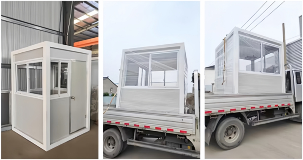 Constructed with a heavy-duty steel frame, the booth offers excellent structural strength, stability, and longevity. Compared with traditional aluminum alloy guard booths, this upgraded steel model delivers greater wind and earthquake resistance, ensuring reliable performance in all conditions. The walls are made of sandwich insulation panels, which provide superior thermal insulation and soundproofing, keeping the interior warm in winter and cool in summer, and minimizing external noise for a more comfortable workspace.